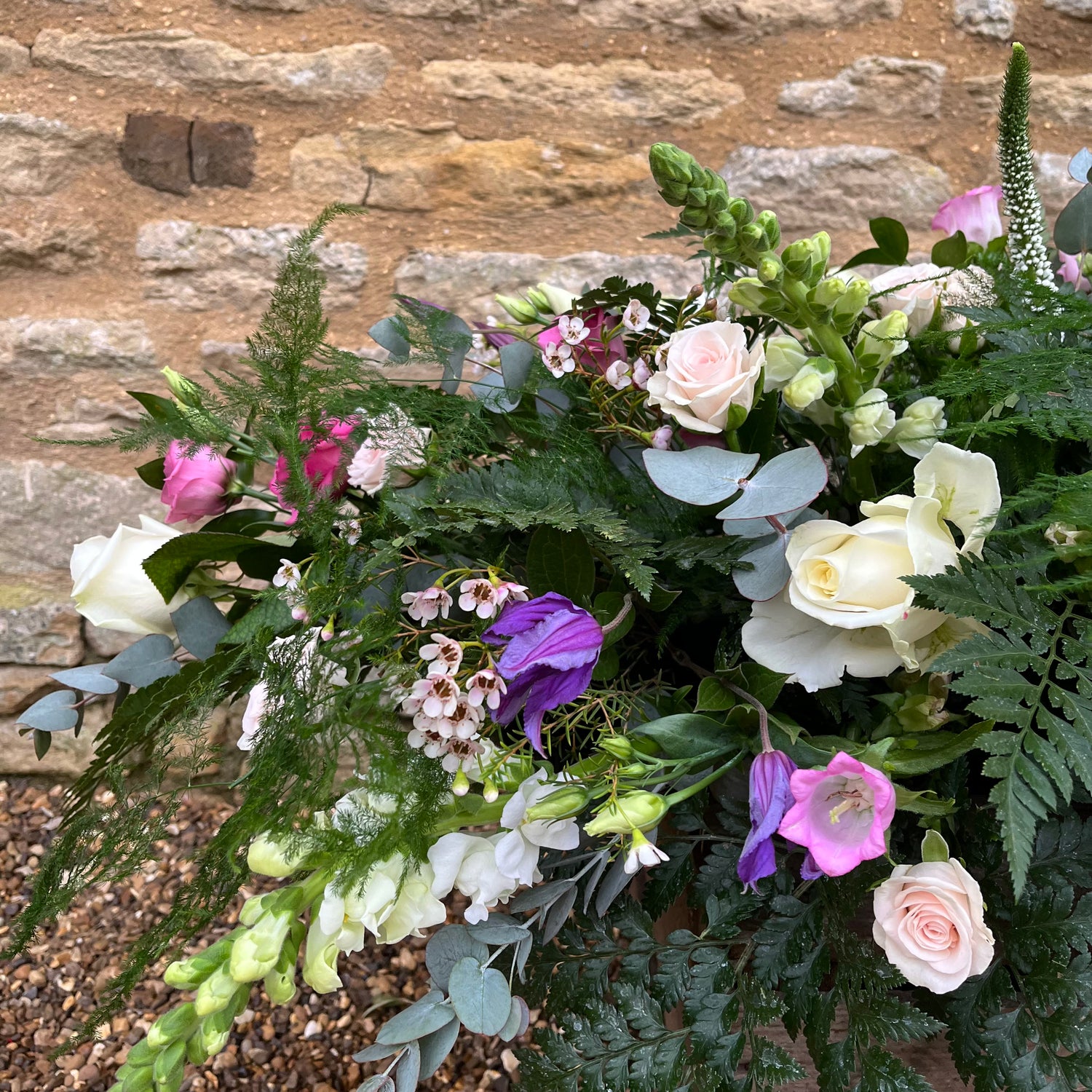 All of our EDEN WILD florals are created using an abundance of texture and tones giving a wilder style and the illusion they have been just picked from a garden. Created bespoke to each order, chosen flowers may vary according to the time of year but will embrace the seasons guided by your colour pallet and design. Delivery will be arranged with the funeral director. . Delivery on all items is £6.50 or you can select click and collect for free at the checkout.