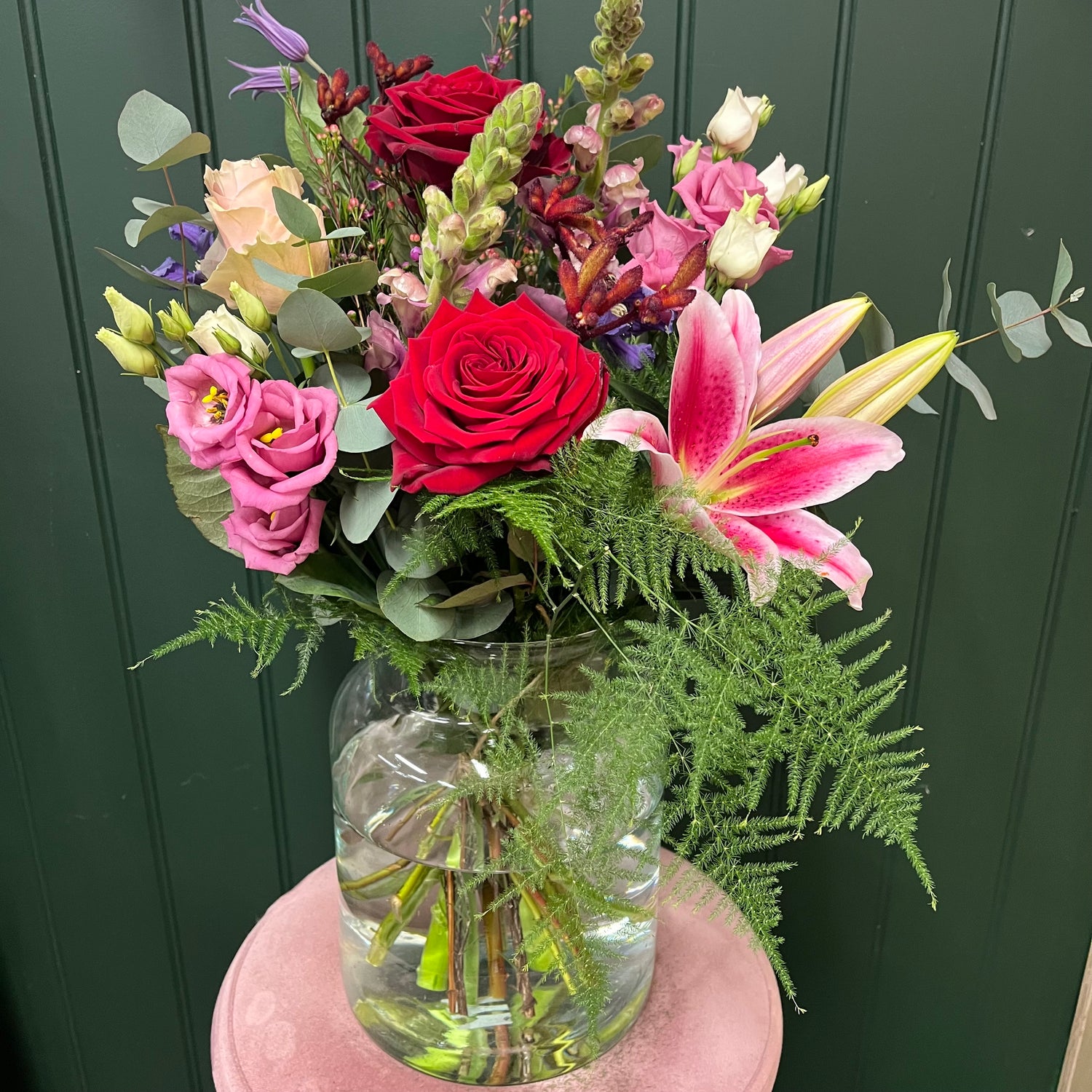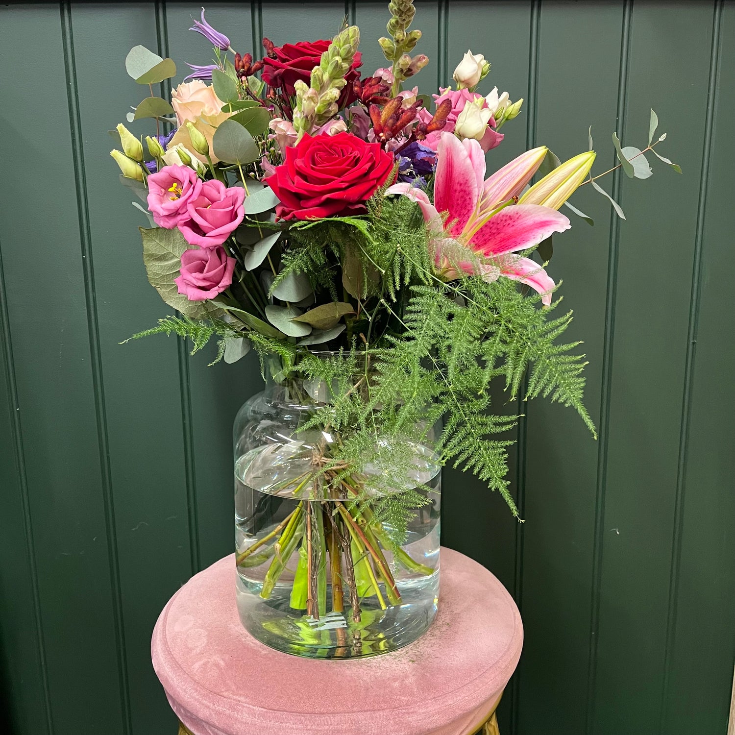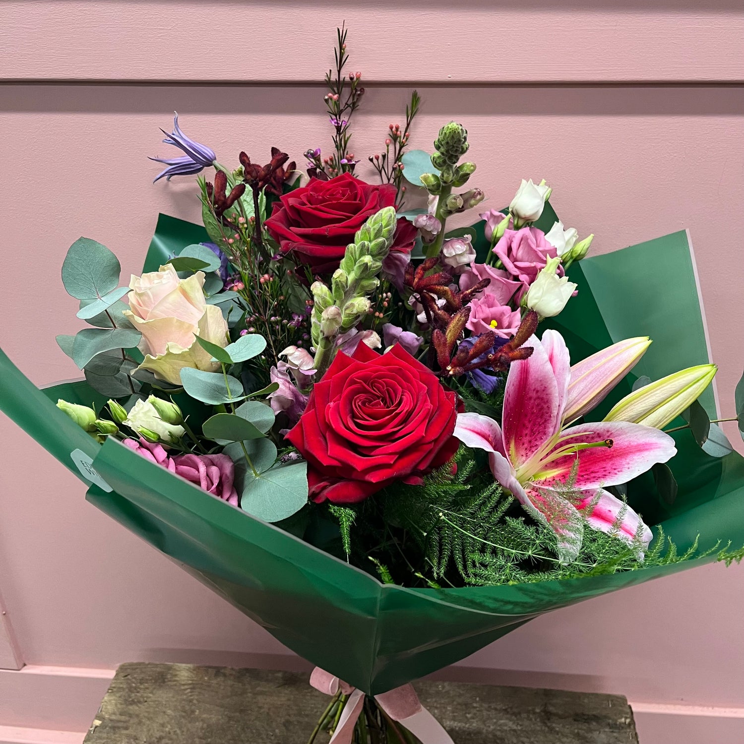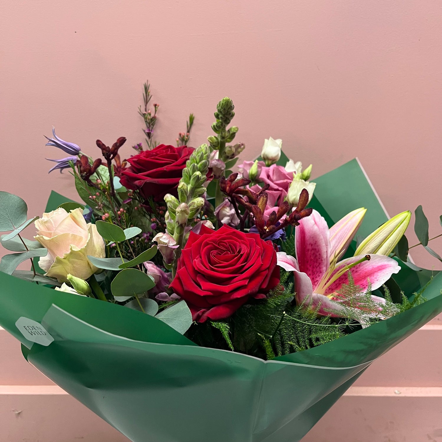 All of our EDEN WILD bouquets are created using an abundance of texture and tones giving a wilder style and the illusion they have been just picked from a garden. Created bespoke to each order, chosen flowers may vary according to availability. Each order is presented in wrapping in keeping with the rustic yet stylish vibe and all flowers are delivered in a bubble of water to ensure ultimate freshness for your occasion. To care for your blooms, be sure to recut the stems and freshen the water every two to three days. Avoid placing flowers in direct light or heat. We aim to ensure all blooms have at least a week life span but this is dependant on the blooms chosen, time of year and environment conditions, some blooms will last less time and others will thrive for weeks. ‘Delivery can be preferenced AM or PM but specific times cannot be guaranteed. Delivery on all items is £6.50 or you can select click and collect for free at the checkout. Orders through the website should be ordered by 1pm for delivery the following day but for same day delivery please contact the shop for availability.