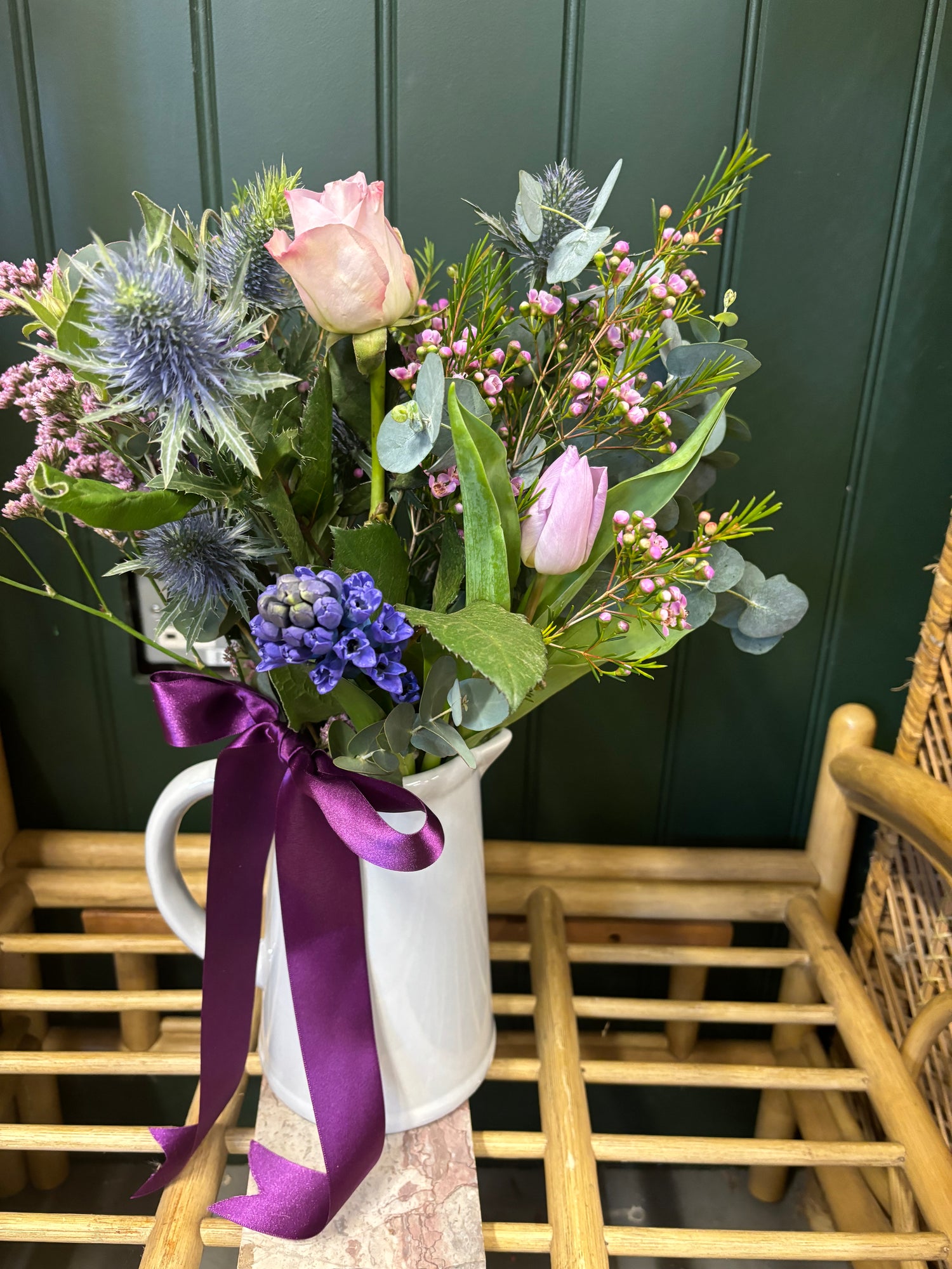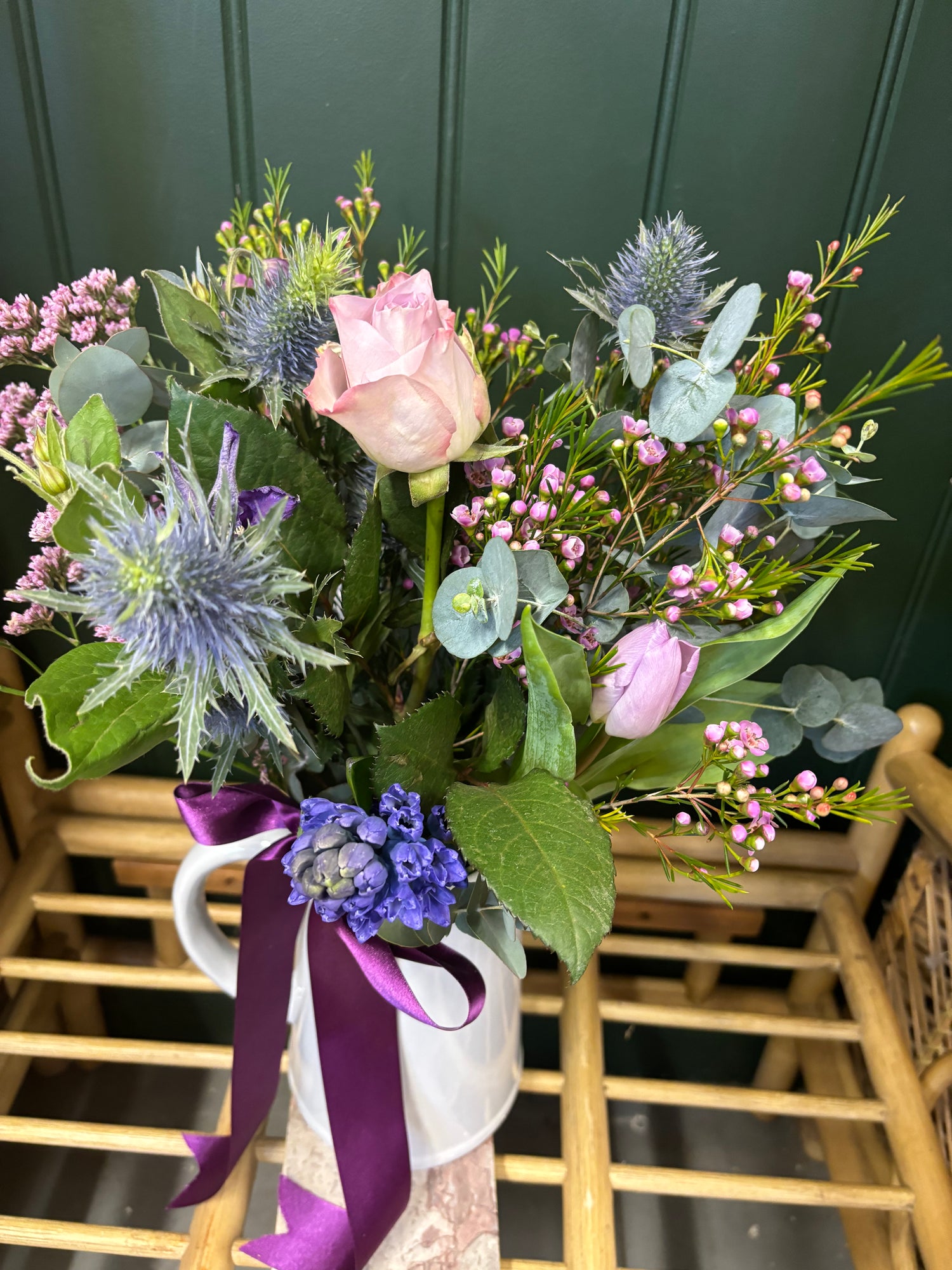 All of our EDEN WILD bouquets are created using an abundance of texture and tones giving a wilder style and the illusion they have been just picked from a garden. Created bespoke to each order, chosen flowers may vary according to availability. Each order is presented in wrapping in keeping with the rustic yet stylish vibe and all flowers are delivered in a bubble of water to ensure ultimate freshness for your occasion. To care for your blooms, be sure to recut the stems and freshen the water every two to three days. Avoid placing flowers in direct light or heat. We aim to ensure all blooms have at least a week life span but this is dependant on the blooms chosen, time of year and environment conditions, some blooms will last less time and others will thrive for weeks. ‘Delivery can be preferenced AM or PM but specific times cannot be guaranteed. Delivery on all items is £6.50 or you can select click and collect for free at the checkout. Orders through the website should be ordered by 1pm for delivery the following day but for same day delivery please contact the shop for availability.