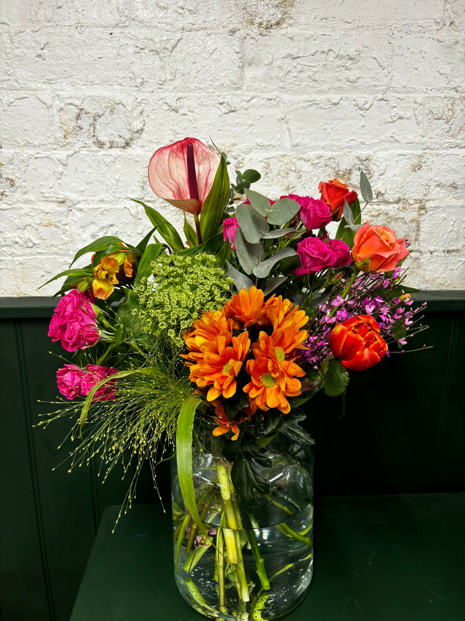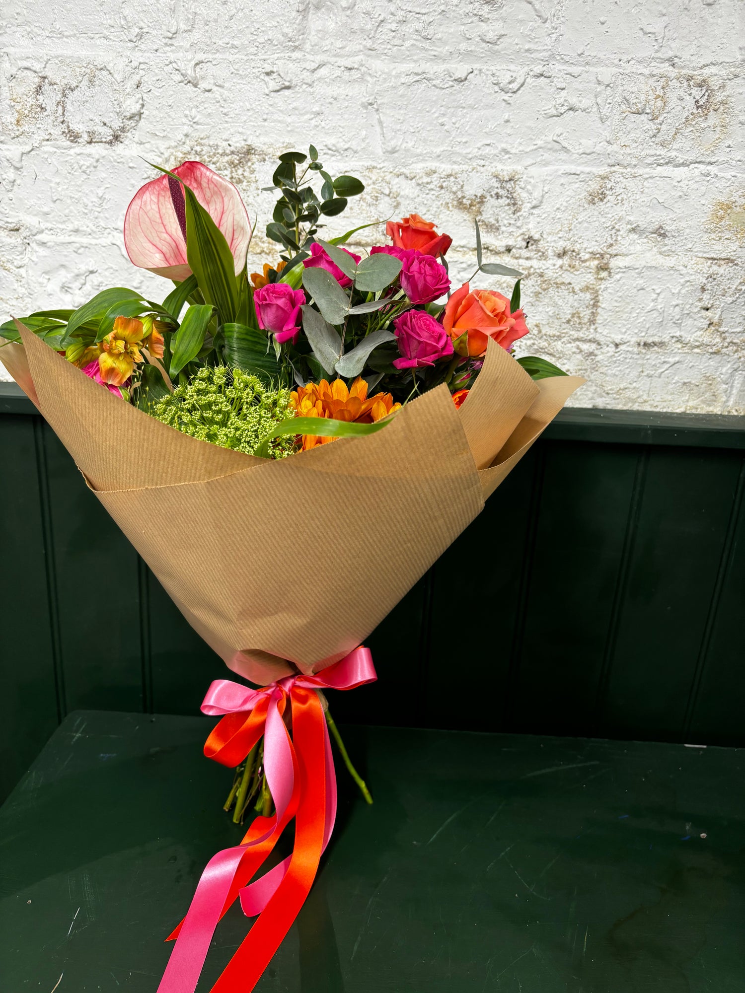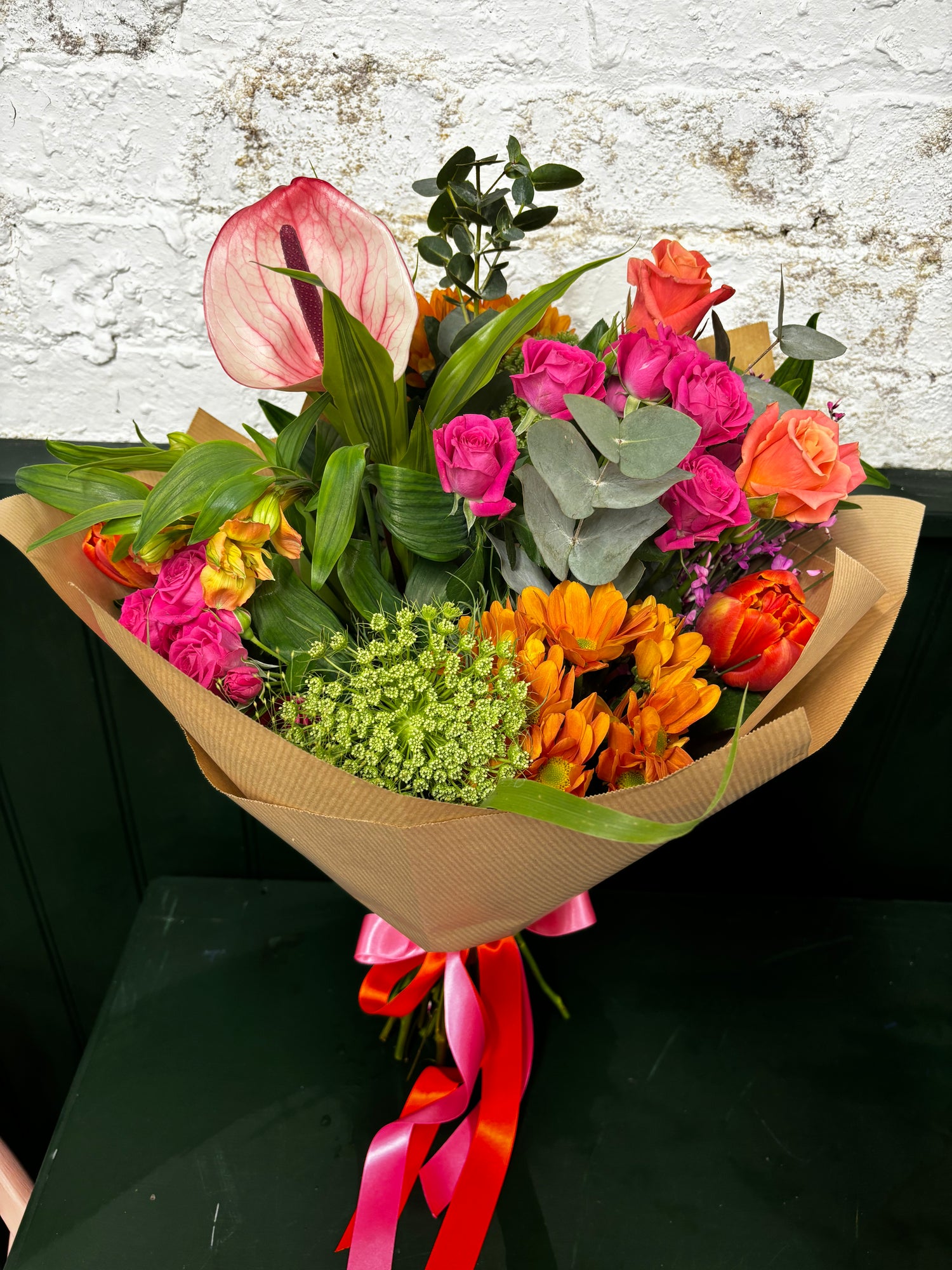 All of our EDEN WILD bouquets are created using an abundance of texture and tones giving a wilder style and the illusion they have been just picked from a garden. Created bespoke to each order, chosen flowers may vary according to availability. Each order is presented in wrapping in keeping with the rustic yet stylish vibe and all flowers are delivered in a bubble of water to ensure ultimate freshness for your occasion. To care for your blooms, be sure to recut the stems and freshen the water every two to three days. Avoid placing flowers in direct light or heat. We aim to ensure all blooms have at least a week life span but this is dependant on the blooms chosen, time of year and environment conditions, some blooms will last less time and others will thrive for weeks. ‘Delivery can be preferenced AM or PM but specific times cannot be guaranteed. Delivery on all items is £6.50 or you can select click and collect for free at the checkout. Orders through the website should be ordered by 1pm for delivery the following day but for same day delivery please contact the shop for availability.