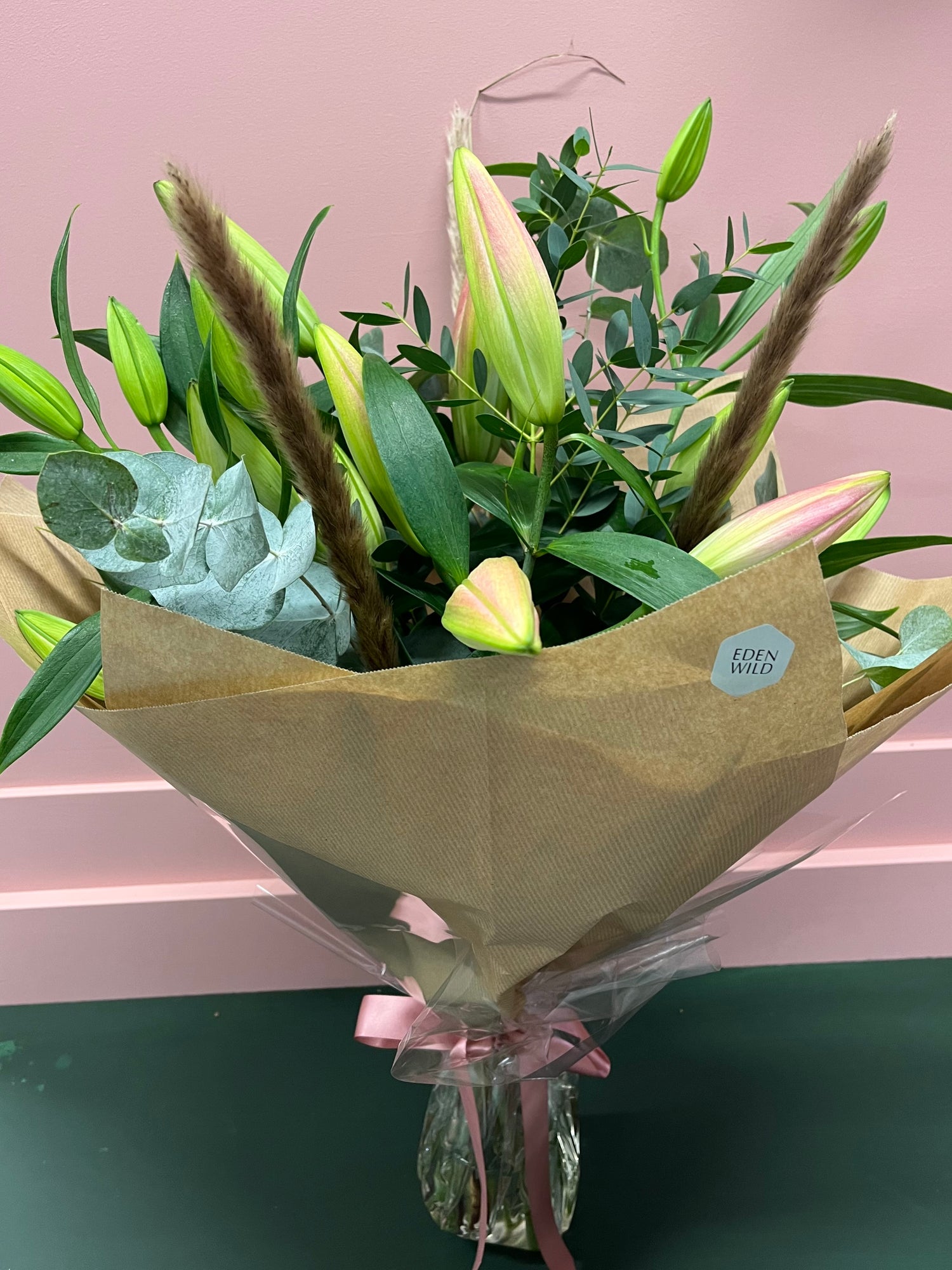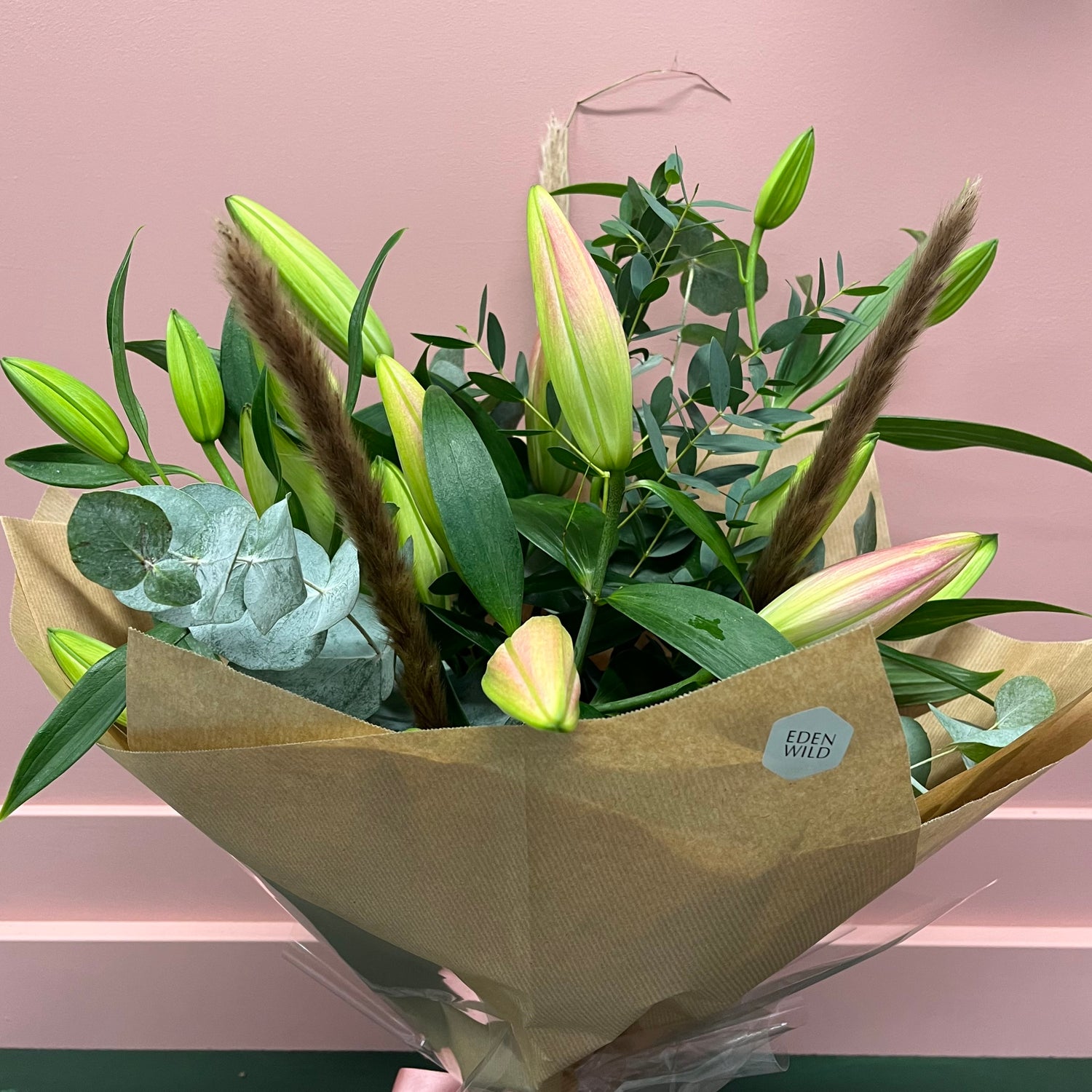 All of our EDEN WILD bouquets are created using an abundance of texture and tones giving a wilder style and the illusion they have been just picked from a garden. Created bespoke to each order, chosen flowers may vary according to the time of year but will embrace the seasons guided by your colour pallet and design. Each order is presented in wrapping in keeping with the rustic yet stylish vibe and all flowers are delivered in a bubble of water to ensure ultimate freshness for your occasion. To care for your blooms, be sure to recut the stems and freshen the water every two to three days. Avoid placing flowers in direct light or heat. We aim to ensure all blooms have at least a week life span but this is dependant on the blooms chosen, time of year and environment conditions, some blooms will last less time and others will thrive for weeks. ‘Delivery can be preferenced AM or PM but specific times cannot be guaranteed. Delivery on all items is £6.50 or you can select click and collect for free at the checkout. Orders through the website should be ordered by 1pm for delivery the following day but for same day delivery please contact the shop for availability.