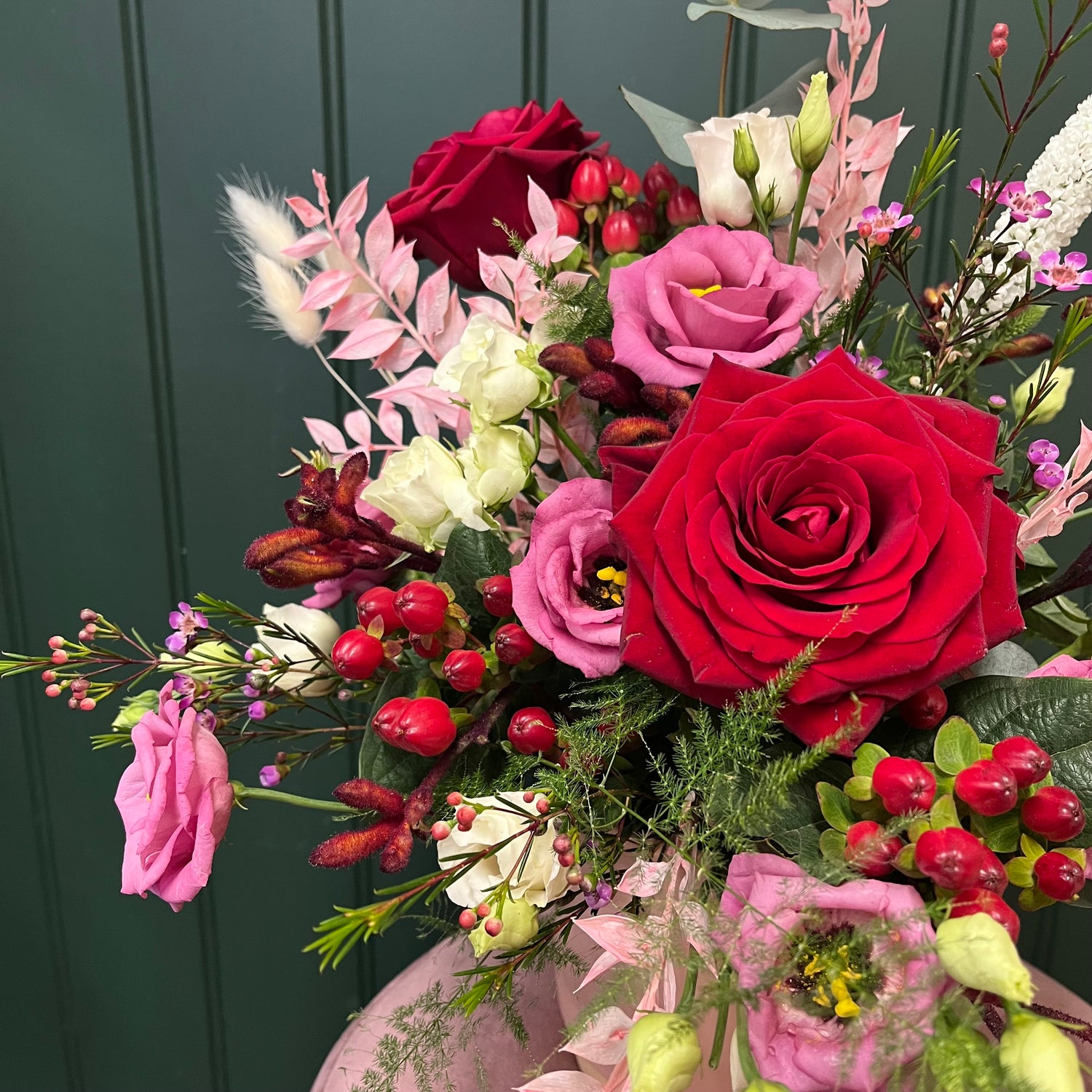 All of our EDEN WILD bouquets are created using an abundance of texture and tones giving a wilder style and the illusion they have been just picked from a garden. Created bespoke to each order, chosen flowers may vary according to availability. Each order is presented in wrapping in keeping with the rustic yet stylish vibe and all flowers are delivered in a bubble of water to ensure ultimate freshness for your occasion. To care for your blooms, be sure to recut the stems and freshen the water every two to three days. Avoid placing flowers in direct light or heat. We aim to ensure all blooms have at least a week life span but this is dependant on the blooms chosen, time of year and environment conditions, some blooms will last less time and others will thrive for weeks. ‘Delivery can be preferenced AM or PM but specific times cannot be guaranteed. Delivery on all items is £6.50 or you can select click and collect for free at the checkout. Orders through the website should be ordered by 1pm for delivery the following day but for same day delivery please contact the shop for availability.